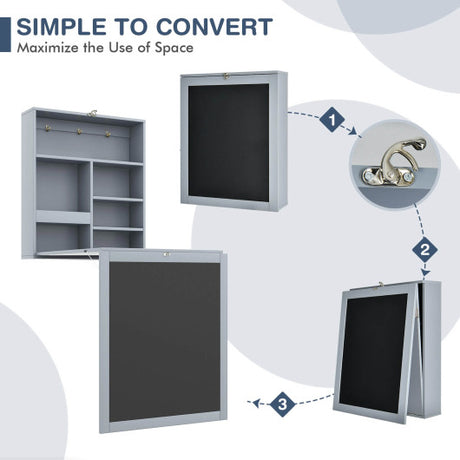 Convertible Wall Mounted Table with A Chalkboard-Gray