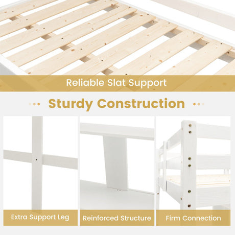 Twin Size Solid Wood Slatted Loft Bed Frame with Safety Guardrail for Kid-White