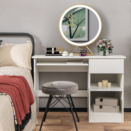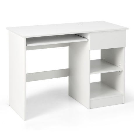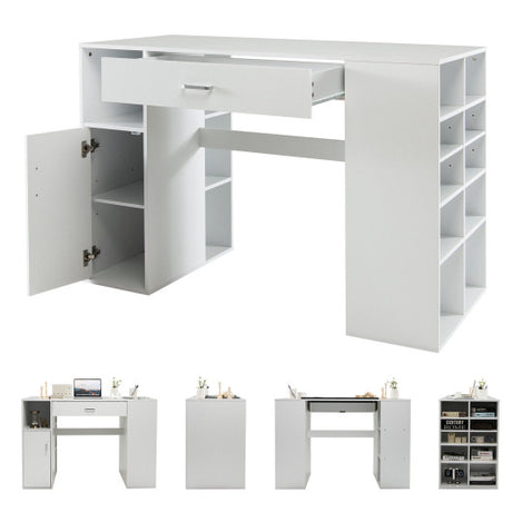 Counter Height Sewing Craft Table Computer Desk with Adjustable Shelves and Drawer-White