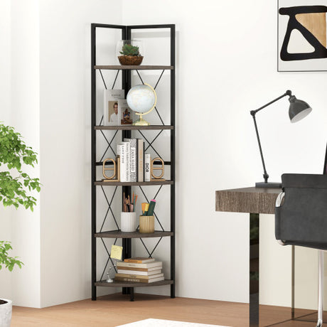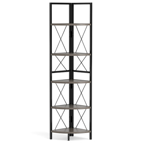 5-Tier Freestanding Corner Shelf 63 Inch Tall Storage Rack-Rustic Brown