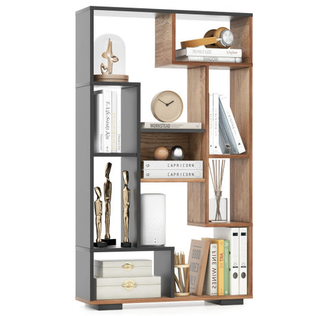 9-Cube Bookcase with 6 Removable Shelves and Raised Support Feet-Brown