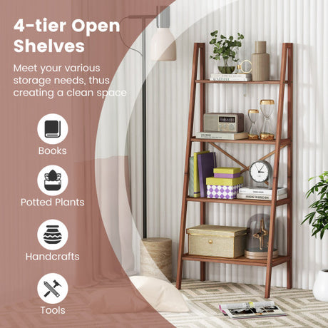 58 Inch 4-Tier Bamboo Ladder Bookshelf-Walnut