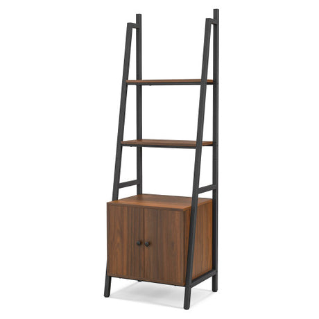 4-Tier Ladder Shelf with Cabinet and Metal Frame-Rustic Brown
