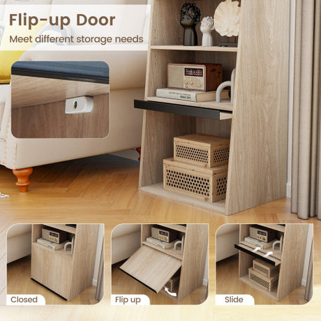6-Tier Bookcase Freestanding Ladder Bookshelf with 2 Adjustable Shelves and Flip Up Door-Natural