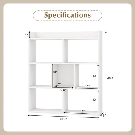 7 Cubes Open-back Bookshelf with Anti-Toppling Devices-White