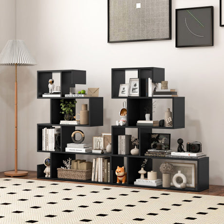5-Tier S-Shaped Bookshelf Geometric Z-Shelf Bookcase with Open Cubes-Black