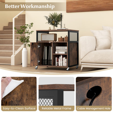 File Cabinet on Wheels with Charging Station and Cable Management Hole-Brown