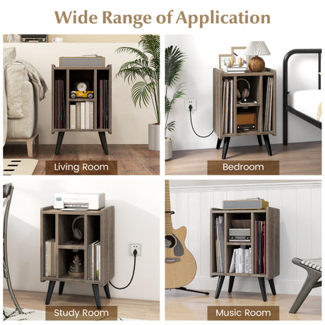Vinyl Record Storage Turntable Stand with 4 Open Shelves-Gray