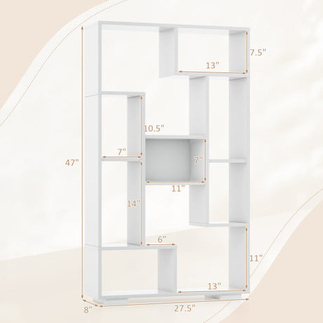 Tree-Shaped Bookshelf with 13 Compartments-White