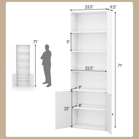 71 Inch Freestanding Bookshelf with 6 Shelves and 2-Door Cabinet-White