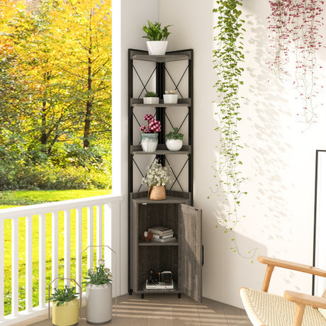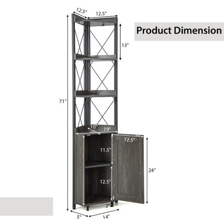 Tall Corner Storage Cabinet with 3-Tier Shelf and Enclosed Cabinet-Gray