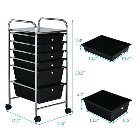 6 Drawers Rolling Storage Cart Organizer-Black
