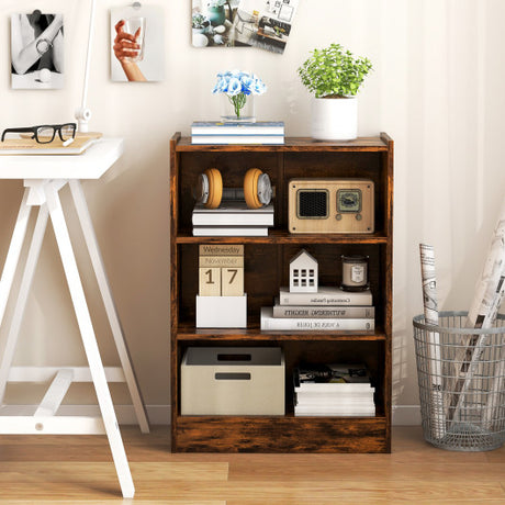 3-Tier Bookcase Open Display Rack Cabinet with Adjustable Shelves-Rustic Brown