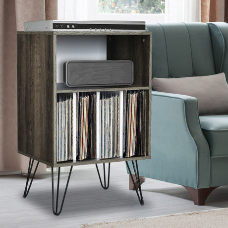 Freestanding Record Player Stand Record Storage Cabinet with Metal Legs-Gray