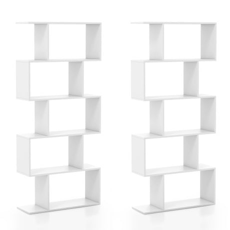 5-Tier Bookshelf with Anti-Toppling Device for Living Room Home Office-White