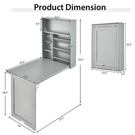 Wall-Mounted Fold-Out Convertible Floating Desk Space Saver-Gray