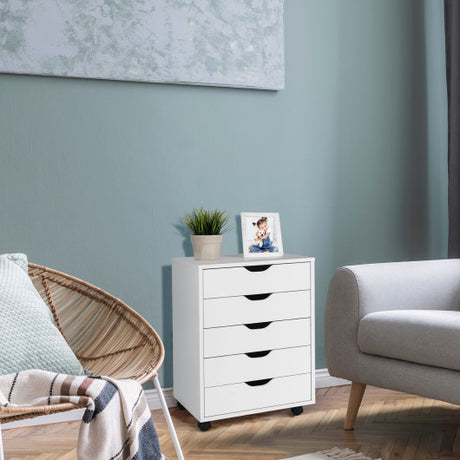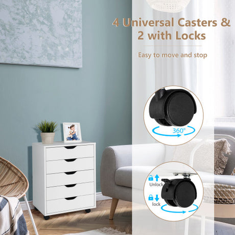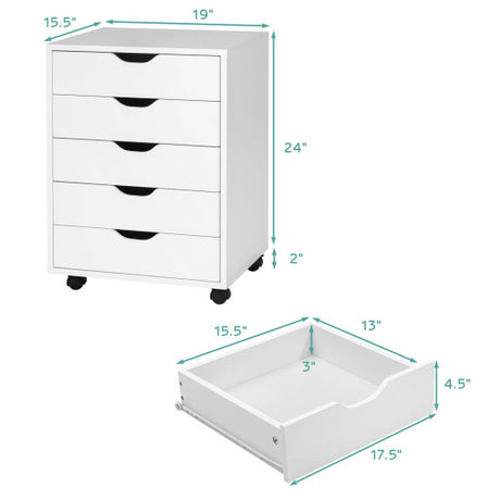 5 Drawer Mobile Lateral Filing Storage Home Office Floor Cabinet with Wheels-White