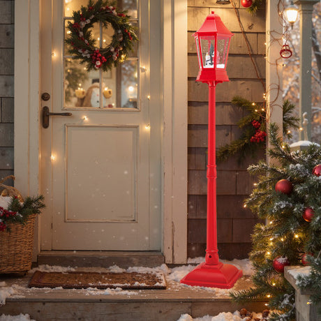 5 Ft Musical Christmas Street Lamp Snow Globe Lantern on Stand-Red