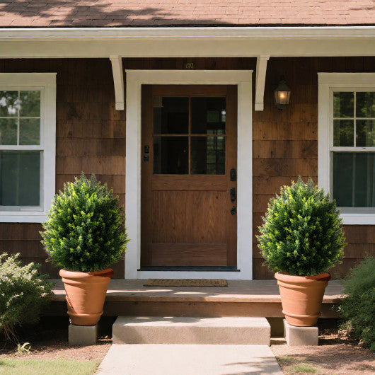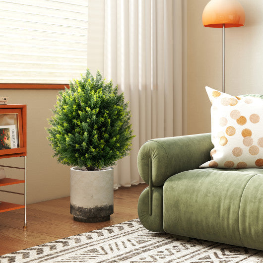 ● Lifelike Appearance: Bring the lifelike beauty of nature into your space with the 24" tall artificial cypress topiary ball tree set of 2 featuring delicately gradient verdant leaves and remarkably realistic trunks.
