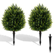 24 Inches Artificial Cypress Topiary Ball Tree Set with Ground Spike-Green