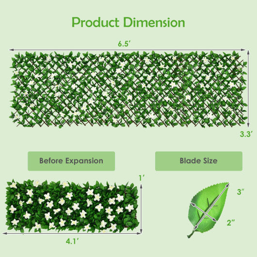 —� Dense Leaves for Privacy: Made up of 412 faux leaves 60 branches and 40 little silk flowers the expandable hedge is compact enough to block out harsh sunlight. Besides it can be used as a privacy screen panel to provide more privacy from the outside in a natural way for your interior places.