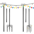 String Light Poles 2 Pack Outdoor Metal Poles with Top Arc Hook and 5-Prong Base-10 ft
