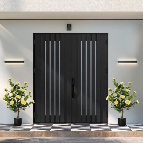 87 Inches Garden Arbor with Lockable Gate Side Planters-Black