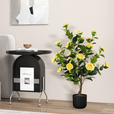 38 Inch Artificial Camellia Tree Faux Flower Plant in Cement Pot-Yellow