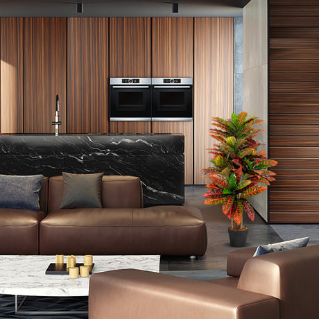 Artificial Croton Plant 40" Tall Fake Croton Palm Tree with Colorful Variegated Leaves and Pot