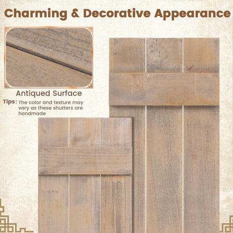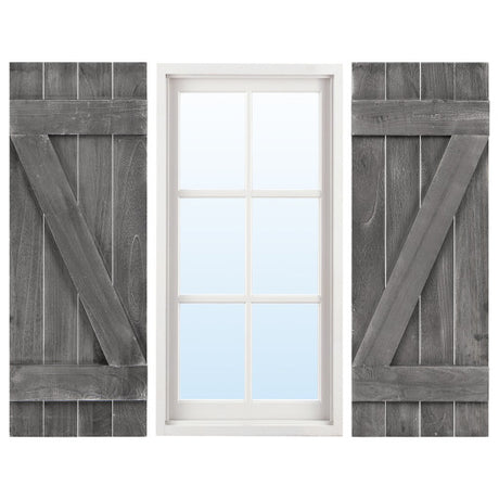 36 x 13 Inch Farmhouse Paulownia Wood Window Shutters Set of 2 for Windows-Dark Gray