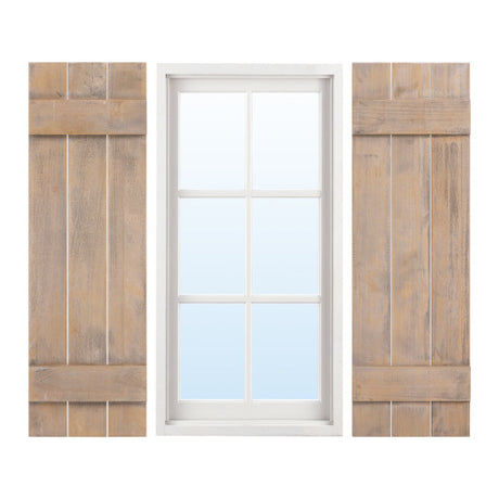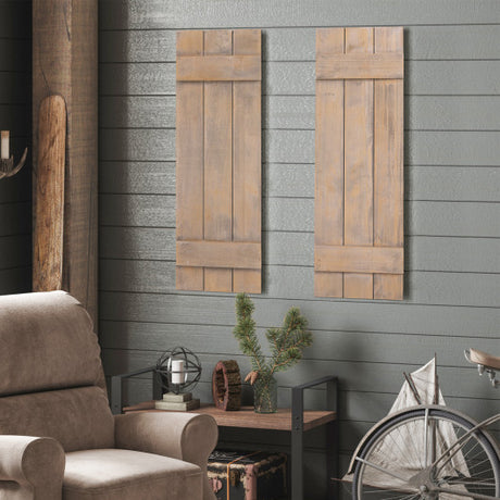36 x 13 Inch Farmhouse Paulownia Wood Window Shutters Set of 2 for Windows-Light Brown