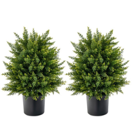 2-Pack Artificial Cedar Topiary Ball Tree with Cement Pot