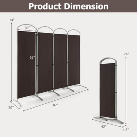 6.2Ft Folding 4-Panel Room Divider for Home Office Living Room -Brown
