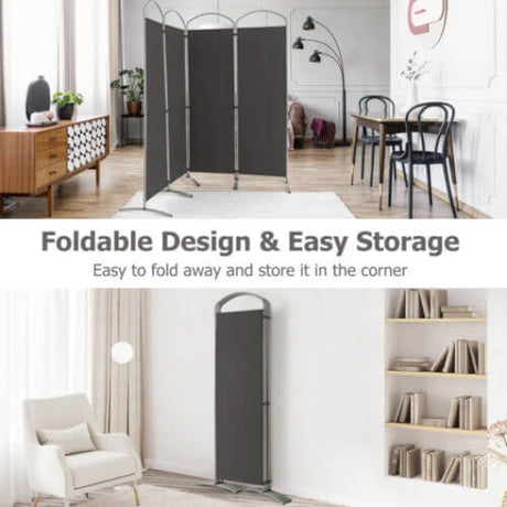 3 Panel Folding Room Divider with Lockable Wheels-Gray