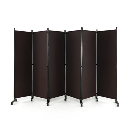 6 Panel 5.7 Feet Tall Rolling Room Divider on Wheels-Brown