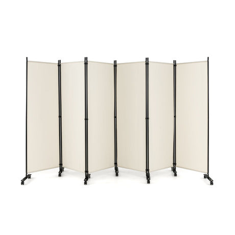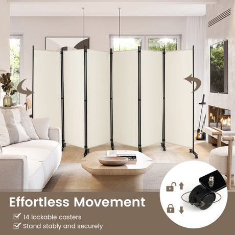 6 Panel 5.7 Feet Tall Rolling Room Divider on Wheels-White