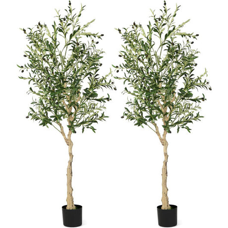 6 Feet Artificial Olive Tree in Cement Pot-2 Pieces