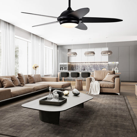 52 Inch Ceiling Fan with Lights and 3 Lighting Colors-Black