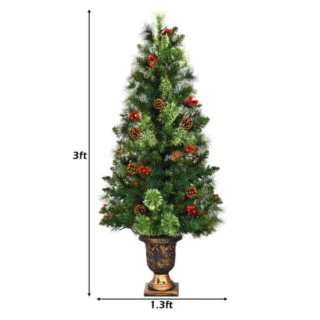 LED Christmas Tree with Red Berries Pine Cones-3'