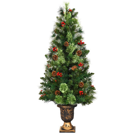 LED Christmas Tree with Red Berries Pine Cones-4'