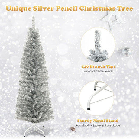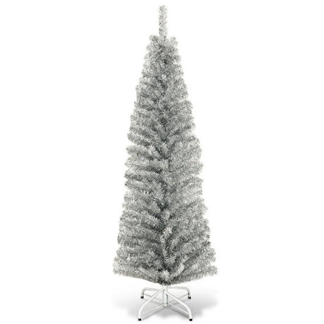6 Feet Tinsel Tree Unlit Slim Pencil Christmas Tree-Silver