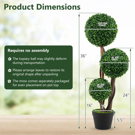 36 Inch Tall Artificial Boxwood Topiary Tree in Pot