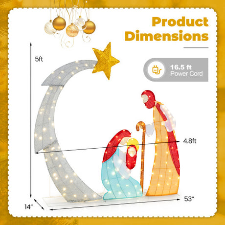 5 ft Christmas Nativity Set Pre-Lit Nativity Scene with 140 Warm White LED Lights