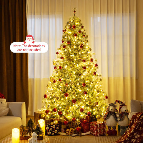 7 Feet Hinged Artificial Pre-lit Christmas Tree with 1303 Branch Tips