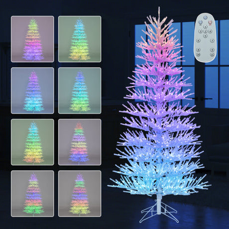 6/7.5 Feet Pre-Lit Artificial Christmas Tree with 11 Modes and Metal Stand-6 ft
