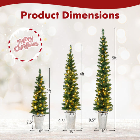3/3.5/4 Feet Set of 3 Tower Shaped Christmas Trees with Removable Star Toppers