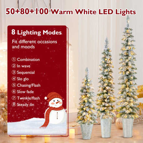 Set of 3 Pre-Lit Snow Flocked Artificial Christmas Trees witrh 423 Branch Tips