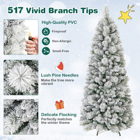 7 Feet Snow Flocked Artificial Christmas Tree with Cool White LED Lights