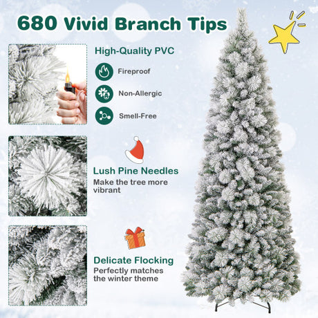 8 Feet Snow Flocked Artificial Christmas Tree with Cool White LED Lights