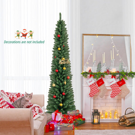 Pencil Christmas Tree with Memory Wire Branch Tips and Warm LED Lights-7FT